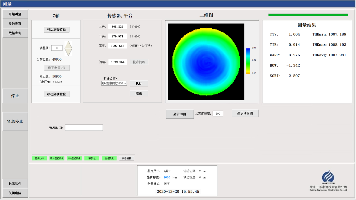 本机采用白光共焦传感器扫描法进行表面形貌测量,经过计算得到Wafer几何尺寸特征值。